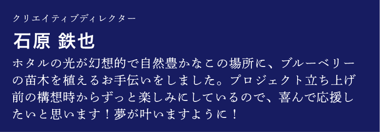 ここで誓った思いを、また三年後に・・・とは言わず、来年も、再来年も。実家に帰るような感覚で、自分の植えたブルーベリー成長を見に来てほしいと思っています。