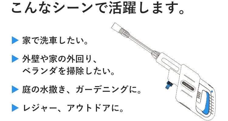 洗車、お家の外壁や外回りの掃除にはHighモード、庭の水撒き、ガーデニングにはLowモードがおすすめです。