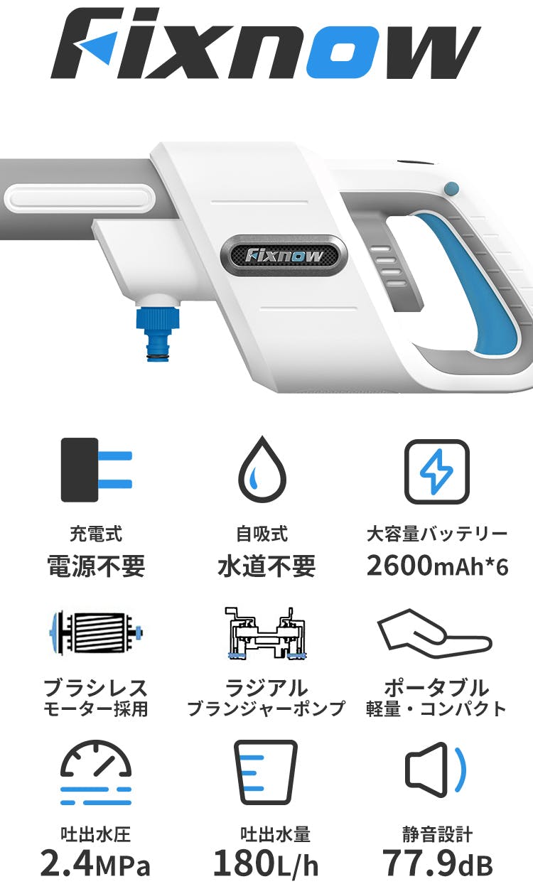 この度、カー用品ブランドFixnowより、ご自宅で手軽に洗車が出来る、充電式高圧洗浄機「Fixnow」が発売されました。