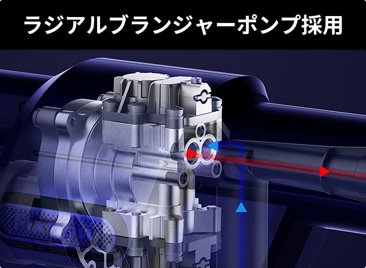 高品質のラジアルブランジャーポンプを採用。稼働効率が良く、水量が多いのが特徴。また、出水も安定しています!広い面を効率よく洗浄できます。