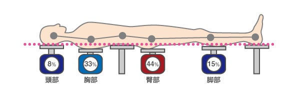 古田土氏: いえ、たんに硬ければいいというわけではありません。たとえば床に直接寝ると、体の接地部分に圧力がかかりすぎて、血行を妨げてしまうのは想像できますよね?このように、硬いながらも体の各部位の体重をやさしく受け止めるバランスの取れたマットが最も腰痛に良いといえるでしょう。
