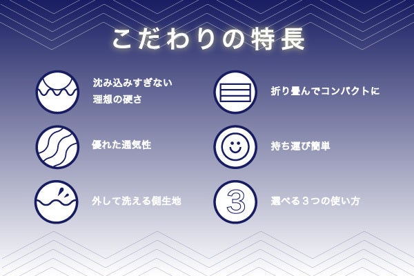 A:独自の2層構造でほどよい硬さがあり臀部が沈みにくいため理想的な寝姿勢を保ちます。