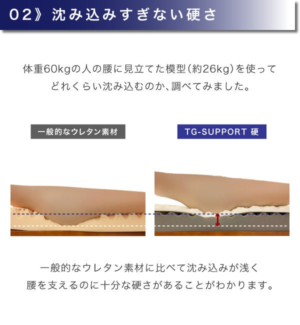 腰痛の方もゆっくり眠れる世界の実現に向けて。シリーズ累計販売50万枚を突破したタンスのゲンのマットレス「TG-SUPPORT」の限定モデルが登場!その名もTG SUPPORT「硬」!創業 74 年の老舗寝具メーカーの研究結果をもとに、超硬くて腰にやさしいマットレスに仕上げることに成功しました。