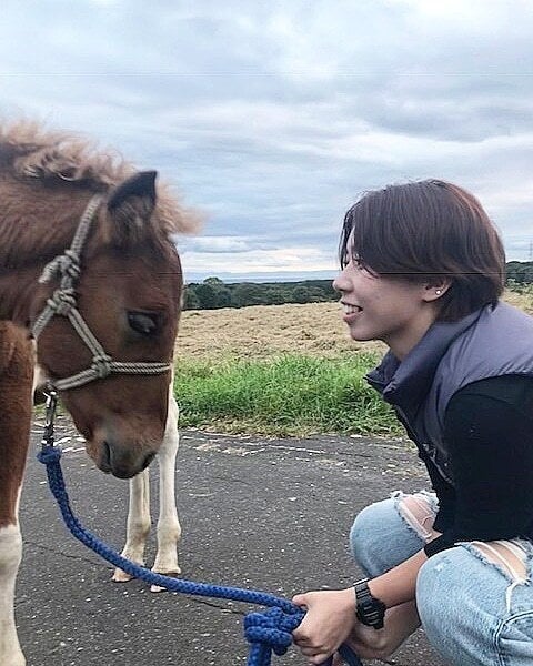 雄大な自然、温かい人々、そして愛しい馬たち。この牧場に魅了されるのにそう時間はかかりませんでした。普段はただの普通のOLをしています。ここでは馬のお世話、外乗のガイドをしています。