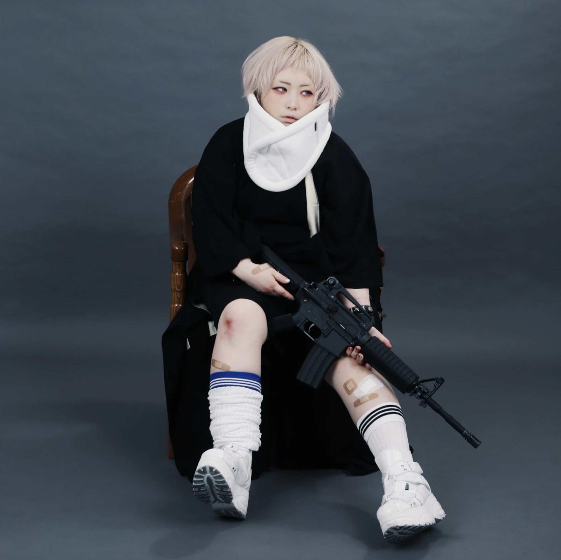 さらに、クラウドファンディングを進める過程で、himaが生前Tokyo Otaku Modeさんと制作していたアパレル商品、「ライクメディカルネックウォーマー」と「都会色迷彩羽織 精神防御特化1号 HAORI」もクラウドファンディングで受注できることになりました。