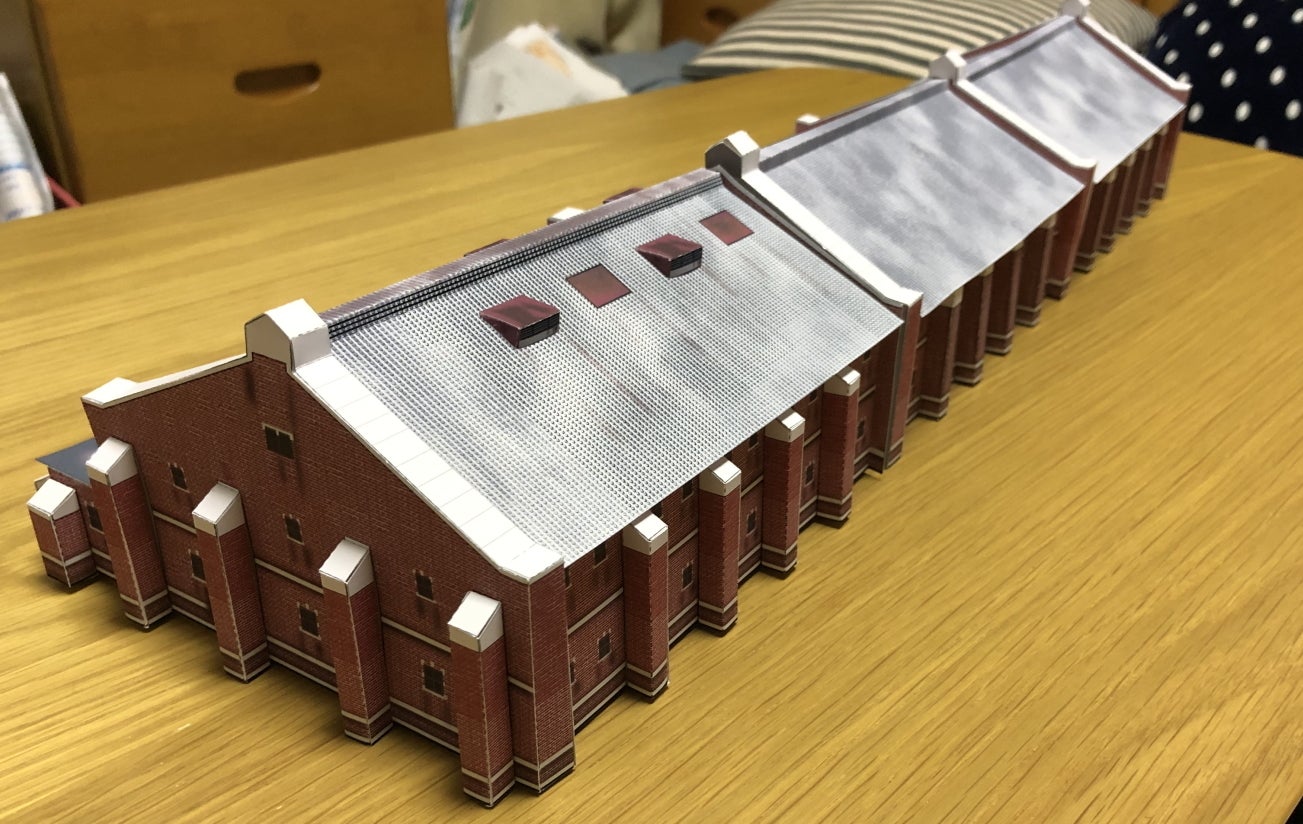 2021/01/23 19:29クラウドファンディング返礼品用の「超精密ペーパークラフト」が完成しました。A4シート19枚、実工作時間10~15時間、初級~中級クラスのモデルになります。被服支廠の4棟のうち、1号棟をモデル化しました。詳細は動画をご覧ください。現地取材により、窓の一つ一つ、入口の一つ一つ、配管や雨垂れの汚れ、1/3をカットモデルとし今では入る事の出来ない内部の柱や梁、階段まであるがままに再現しました。 もっと見る