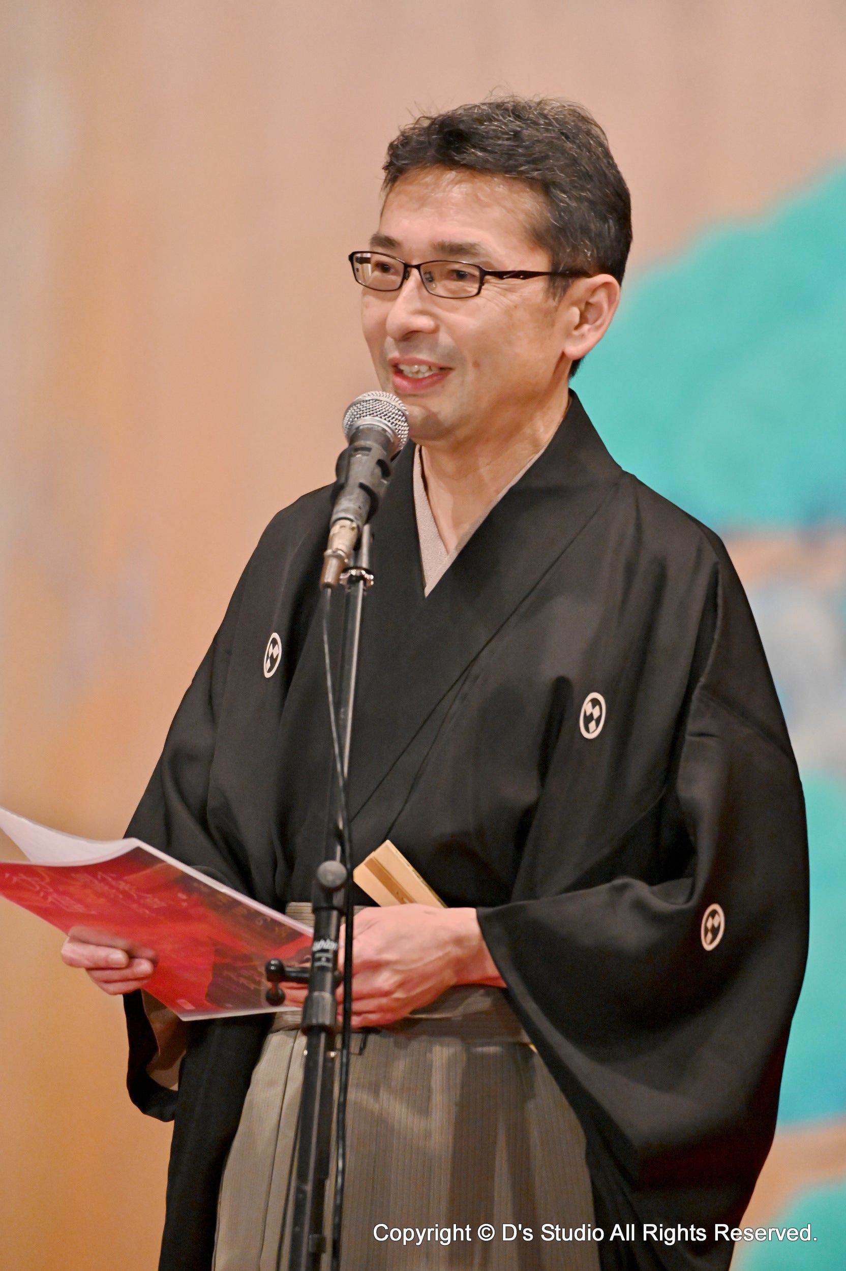 能舞台の決まりに則り、佐野史郎さんは羽織袴姿で、山本恭司さんも白足袋で能舞台に上がります。
