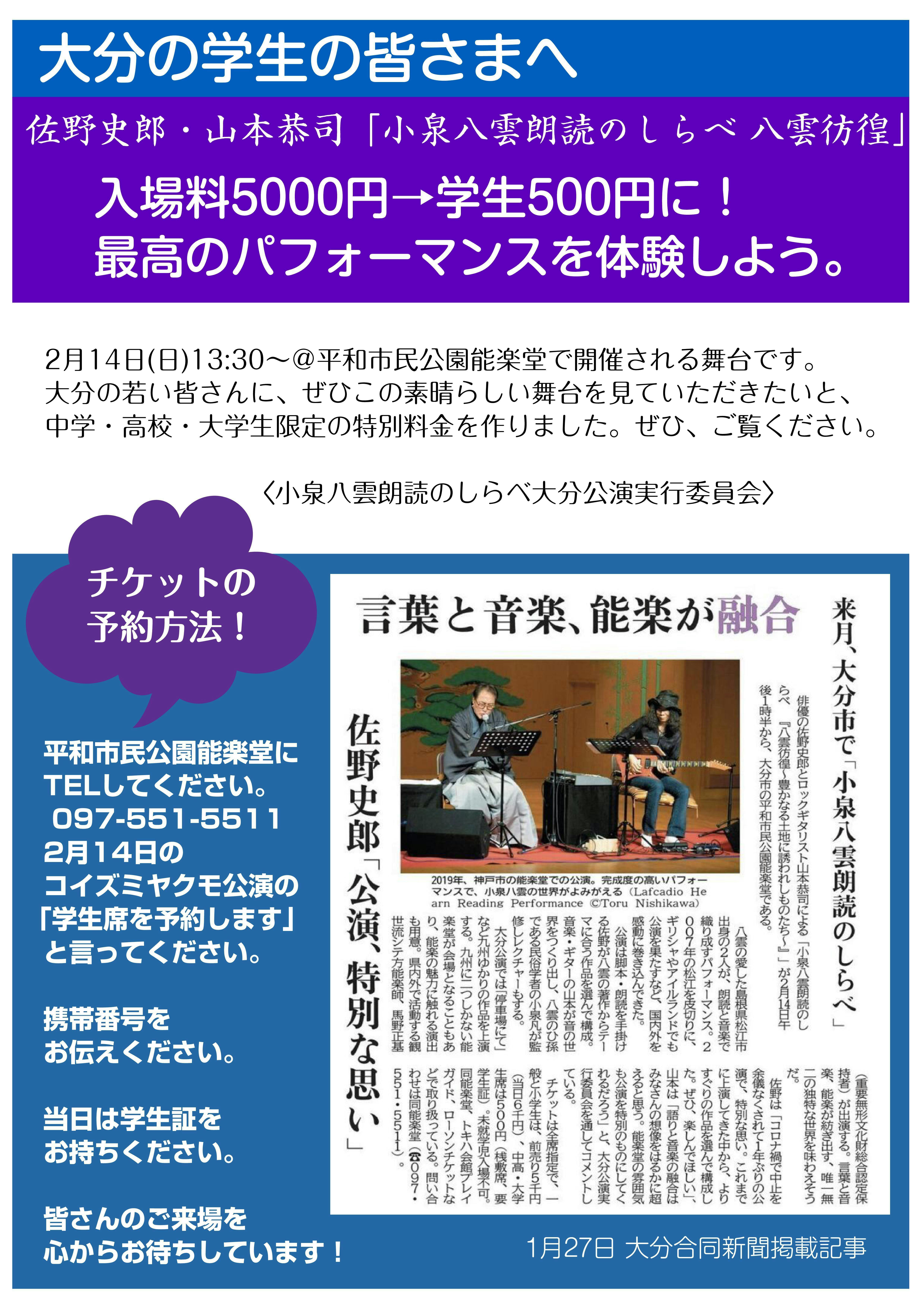 はじめまして。「小泉八雲朗読のしらべ大分公演実行委員会」と申します。