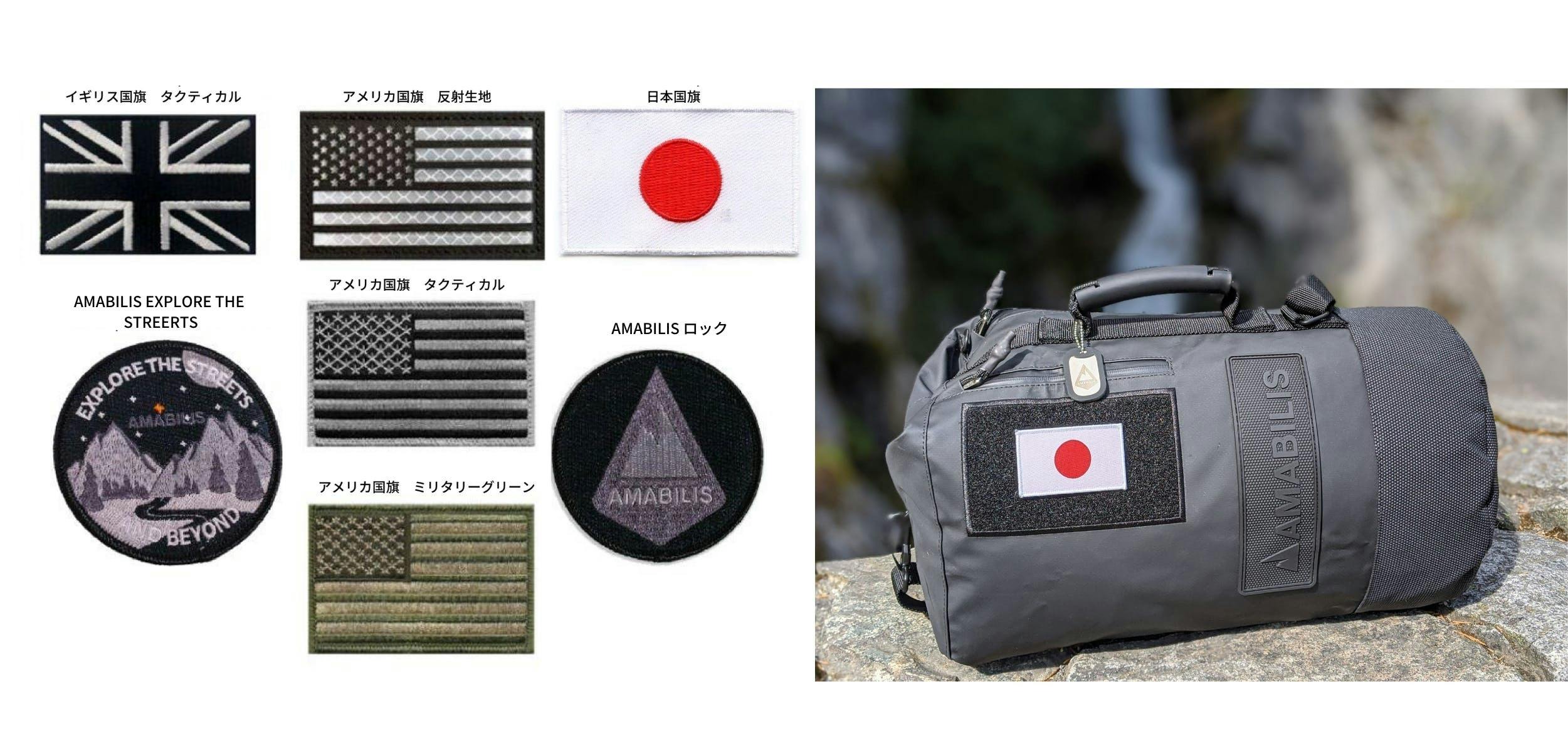 イギリス国旗タクティカル、AMABILIS EXPLORE THE STREETS (ETS)、アメリカ国旗反射生地、アメリカ国旗タクティカル、アメリカ国旗ミリタリーグリーン、日本国旗、AMABILIS ロック
