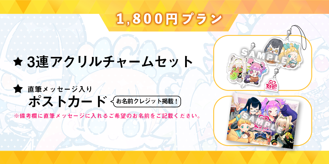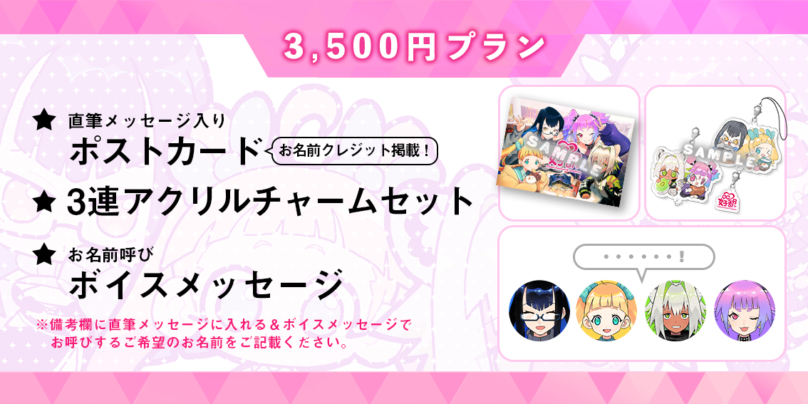 ※必ず備考欄にご希望のお名前をご記載ください(ポストカードのクレジット掲載&直筆メッセージの宛名&ボイスメッセージでお呼びする際に使用いたします) 。第三者を特定する内容や公序良俗に反するお名前はお断りする可能性がございます。