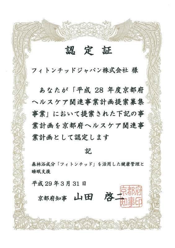 *「フィトンチッド」を活用した健康管理と睡眠支援として、京都府よりヘルスケア関連事業計画の認定