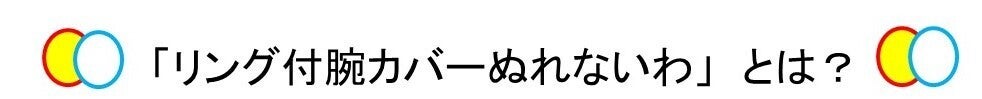 「リング付腕カバーぬれないわ」は、防水生地の腕カバーと柔軟なゴムリングの組合せによって、ペラペラで形を持たない防水生地が、日本刀の鍔(ツバ)にも似た立体構造となり、手首部分が10cm程ふくらんでいるのが特徴です。
