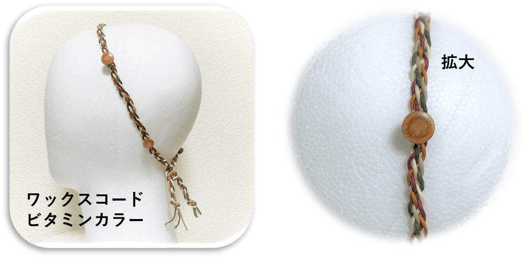 仕様:長さ約70cm 綿ワックスコード、木製ボタン