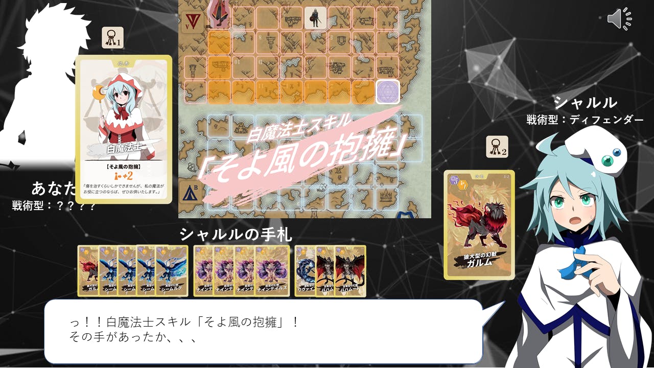 相手が出すカードは完全ランダムという訳ではなく、プレイヤーの相対位置、衛兵の配置、場に出された詠唱カードなどの限られた情報からある程度絞り込むことができます。その上で、セオリー通りの一手を打つか、それとも相手の裏をかく奇策に出るか。読み合い騙し合いのノンストップ心理バトルのいざ開幕です!