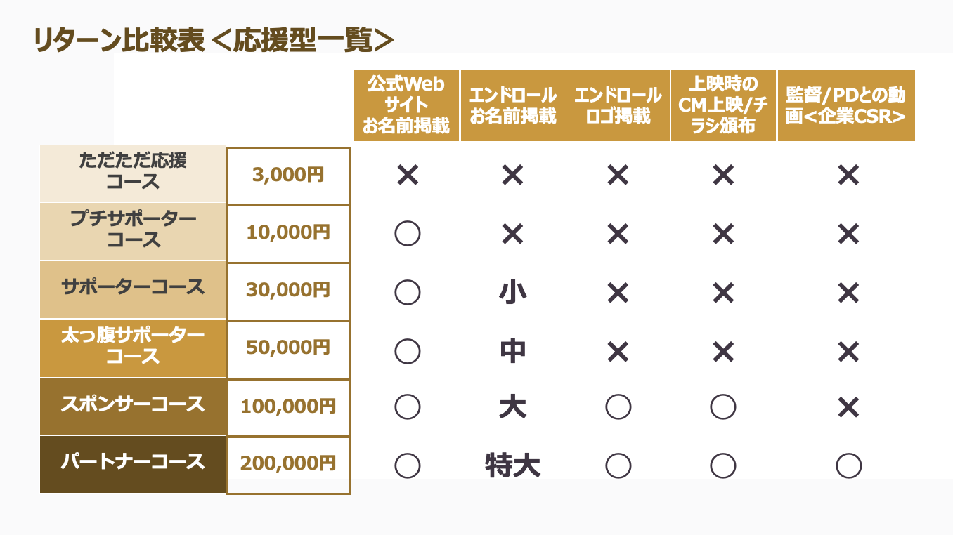 全てのリターンにおいて、本映画(約45分)の視聴が可能となります。