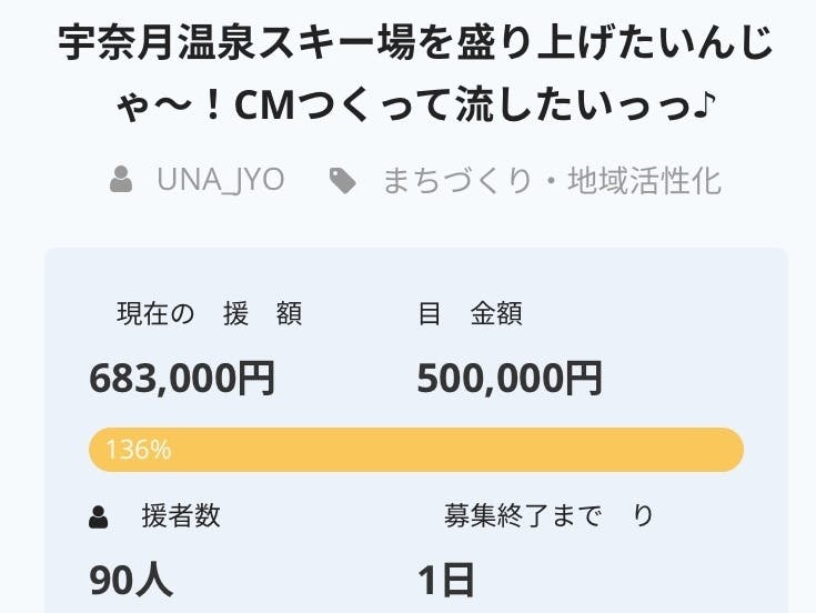 2021/01/16 08:26みなさんおはようございます。富山県は曇天です。昨日をもちましてクラウドファンディング達成&終了しました!91名の方にご支援いただき応援いただき本当にありがとうございました!先日から宇奈月温泉スキー場は圧雪車が壊れておりなかなか営業が出来ず、来週月曜18日からようやく再開します。そして本日より1か月間、北日本放送様と富山テレビ放送様の2局でこのCMを流していただけることになりました(´°̥̥̥̥̥̥̥̥ω°̥̥̥̥̥̥̥̥`)そしてそして、本日付の北日本新聞様で取材内容も記事になっております!皆さんのおかげでこの活動が続けられていることに心から感謝し、今後も宇奈月、富山県のために少しでもできることを探し挑戦していきたいと思います。ありがとうございました。宇奈月女子化プロジェクト代表 津田奈由子 もっと見る