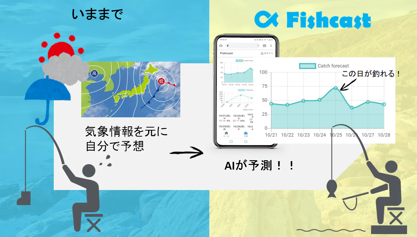「想像と違って釣れなかった」という経験を無くす釣果予測をコンセプトとした