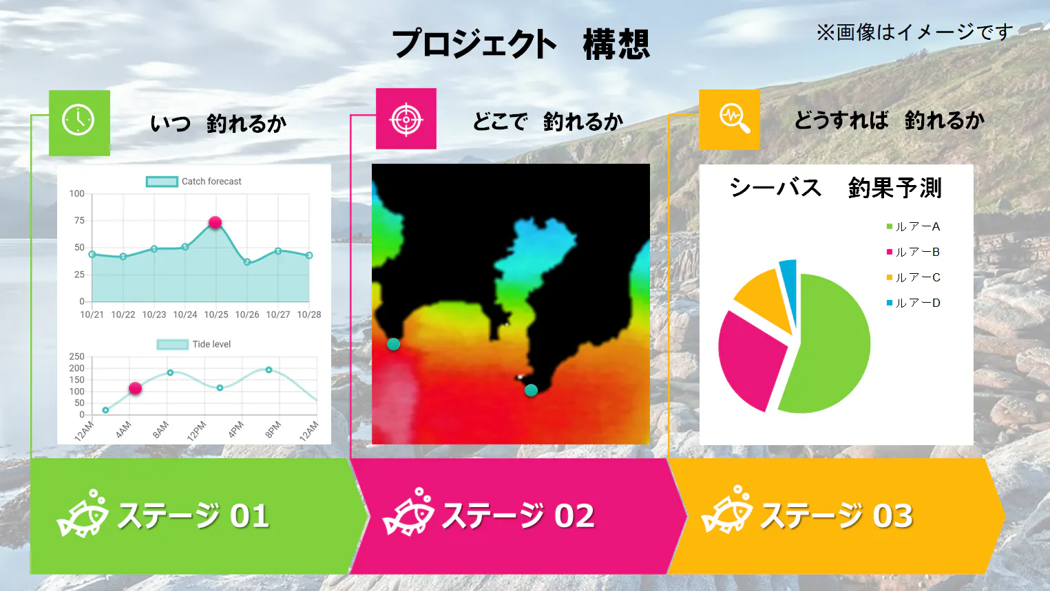 現在は「ステージ01 いつ 釣れるか」に対する予測を最優先課題として
