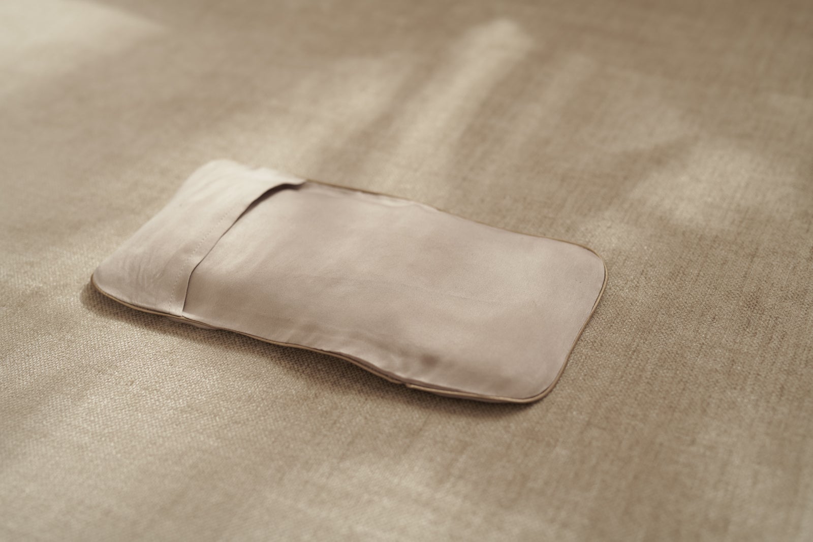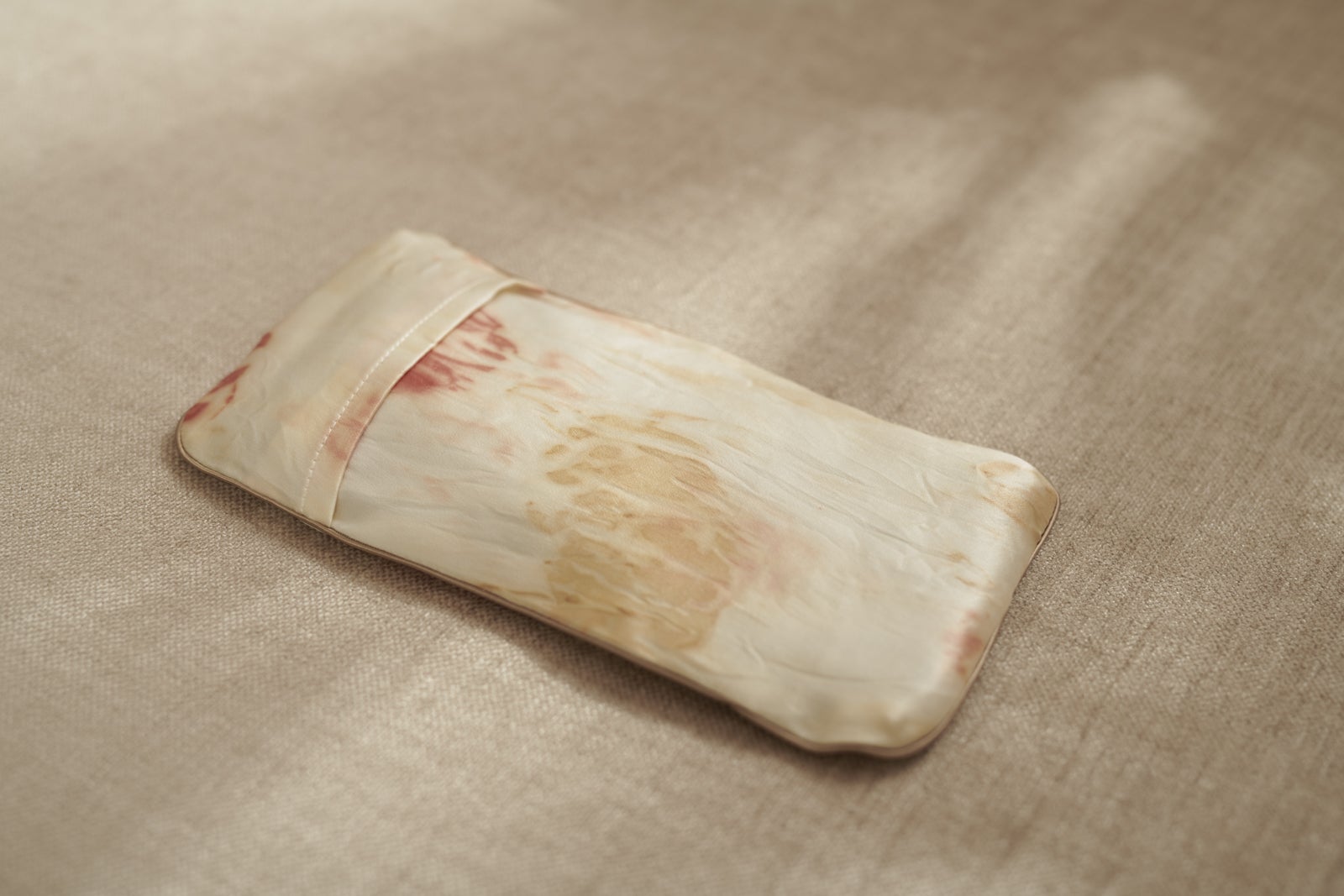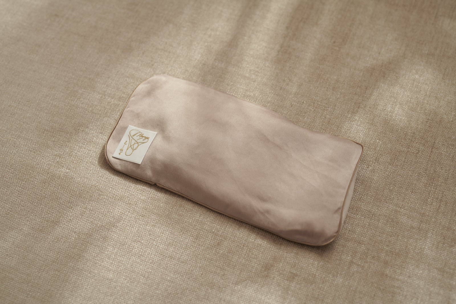 パソコンやスマホで何かと酷使しがちな現代人の目に、おすすめしたいアイピロー。温めたり冷やしたりして、疲れた目を優しくケアしてあげて下さいね。生地は、京都と東京の職人さんが一枚一枚手作業で、草木染め・花びら染めの技術を使って染め上げています。フチのパイピングが高級感アップ。花のもつ優しさに包まれる、極上体験をお楽しみください。