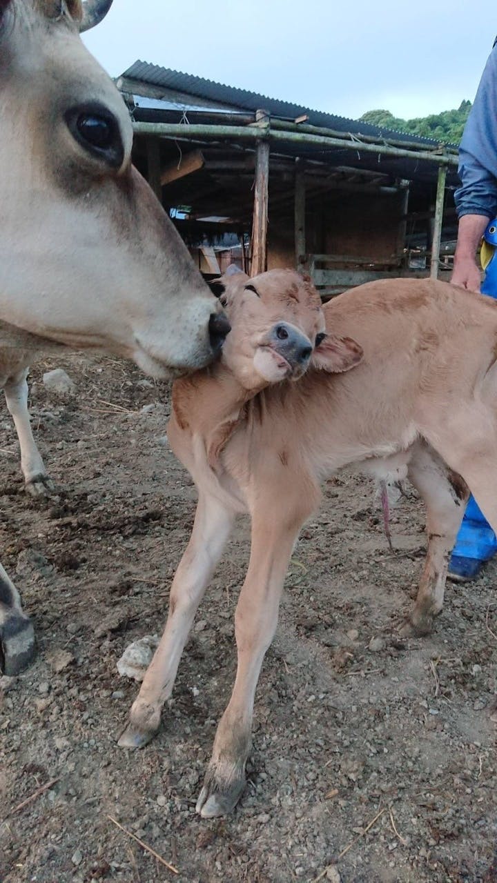 親牛が可愛い赤ちゃんを産むのは山の麓。一人(一頭)で元気に出産。人間の手は一切要りません。