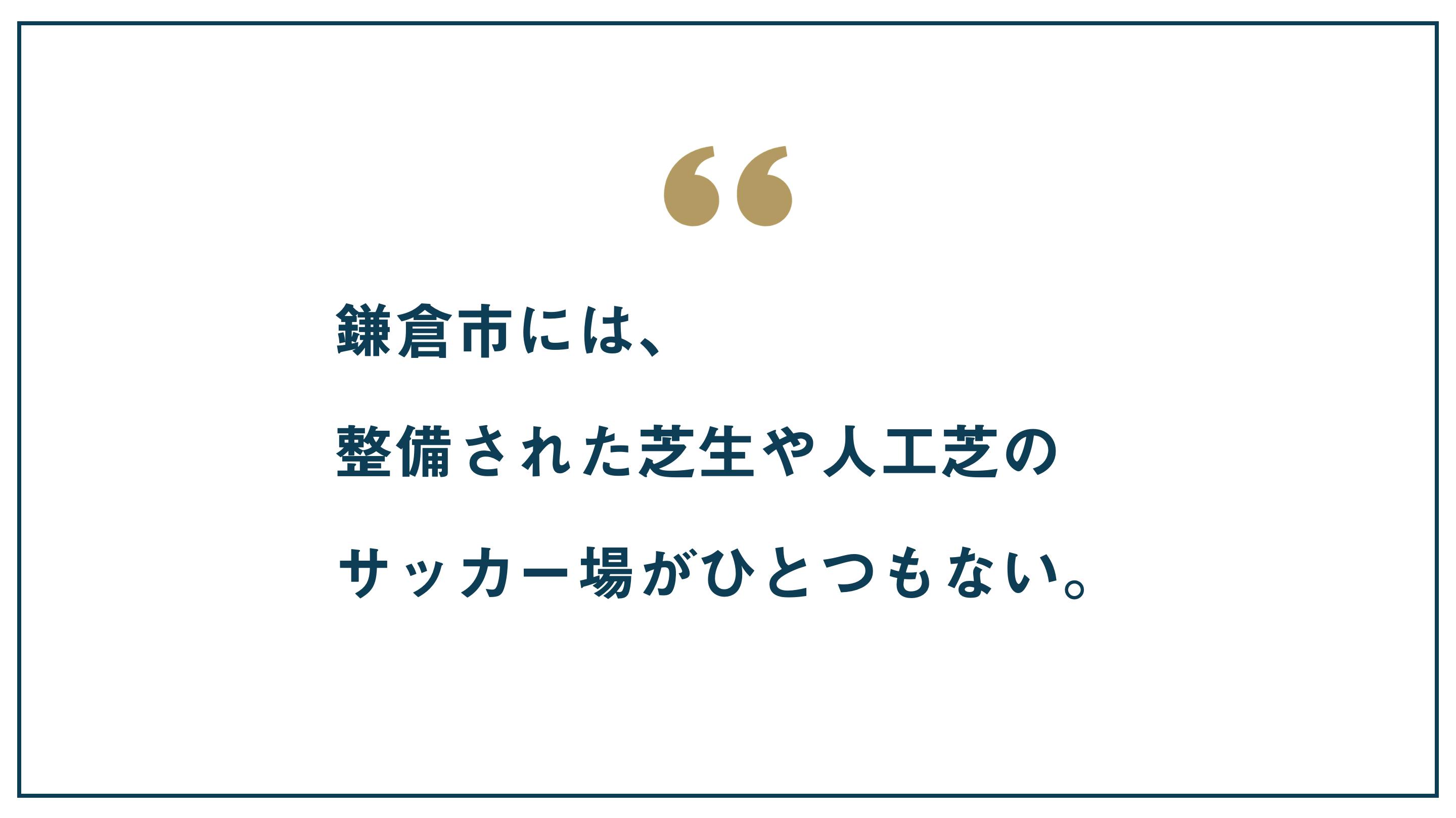 ハッキリ言って、こんなプロジェクトを行政や大手企業一辺倒に頼るのではなく、僕をはじめ、民間の、いち個人の有志の仲間たちの集まりでゼロから進めていくのは無謀なチャレンジでしたし、今でもそう思ってます。まるでかつての米国の映画「フィールド・オブ・ドリームス」のサッカー版、鎌倉版とも言えるかもしれません。
