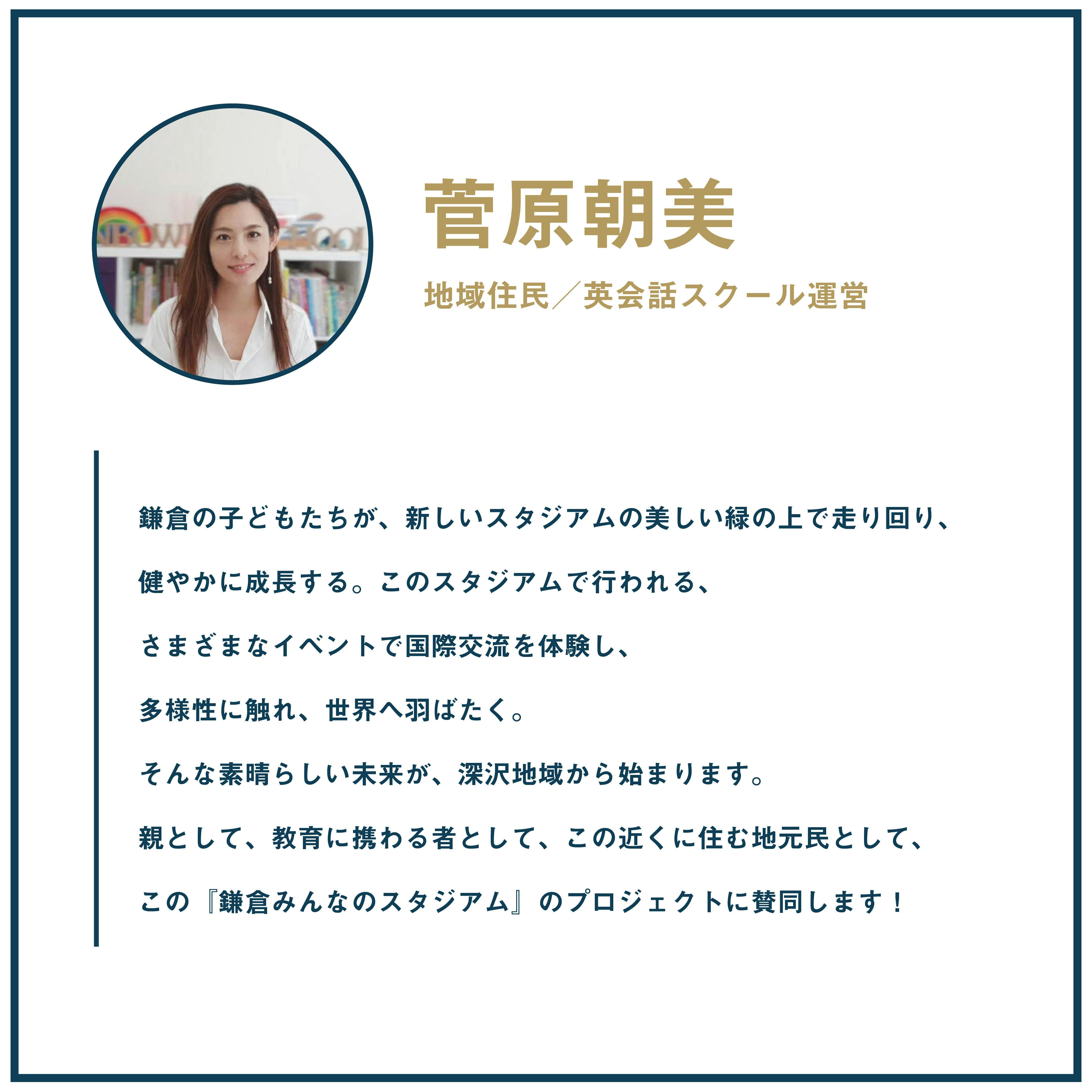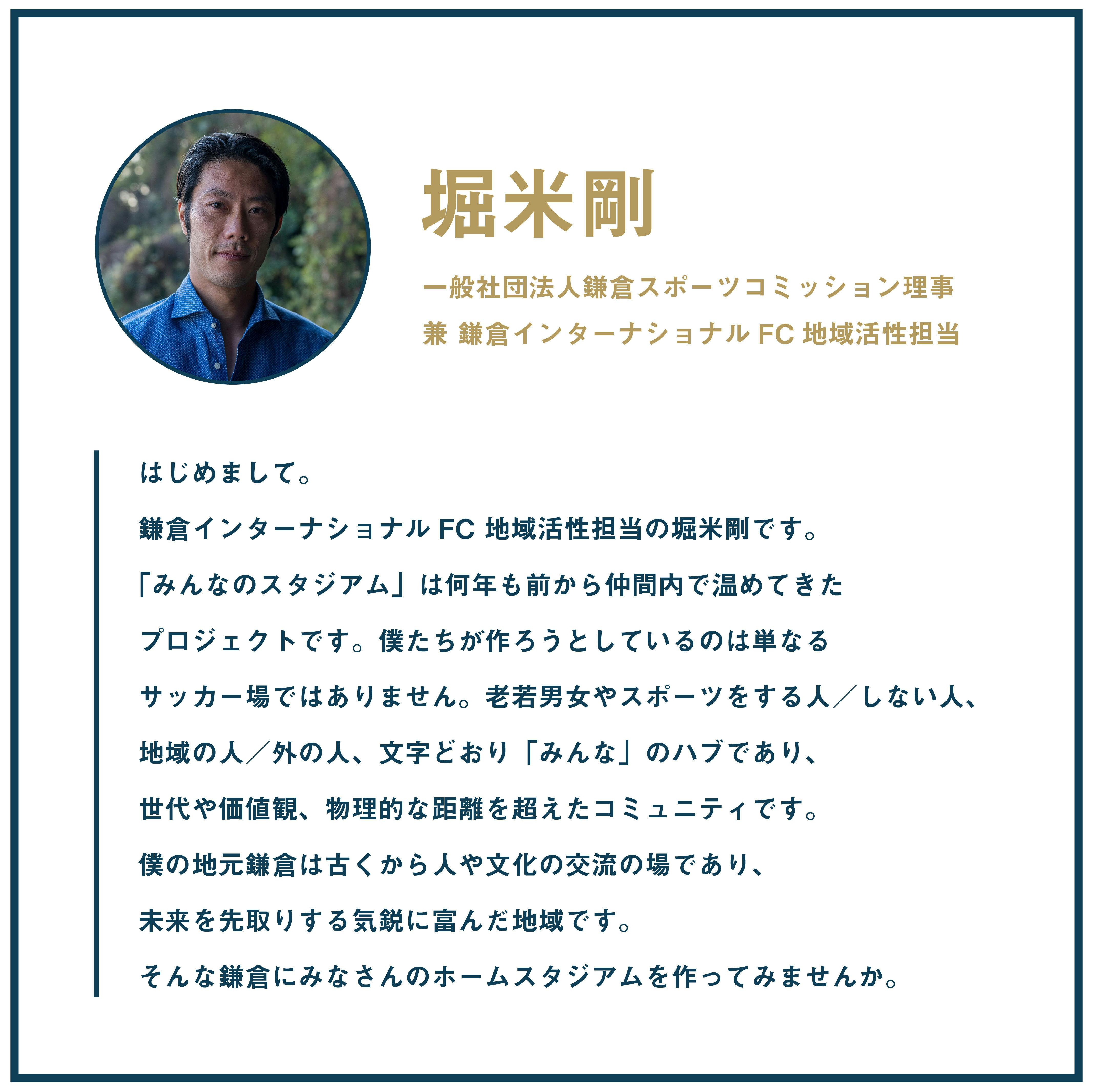 今回のプロジェクトは、鎌倉インテルを設立した当初から「必ず実現をしたい」と思い描き続けてきたことのひとつです。試合や練習拠点となるだけでなく、スポーツを介して、周辺地域の方々が大人から子どもまで世代を越えて、性別やバックグラウンドなどの垣根を越えて賑わいを起こすことができれば、地元のみならず、日本各地から、そして世界からエネルギーを集結させられることができると思います。