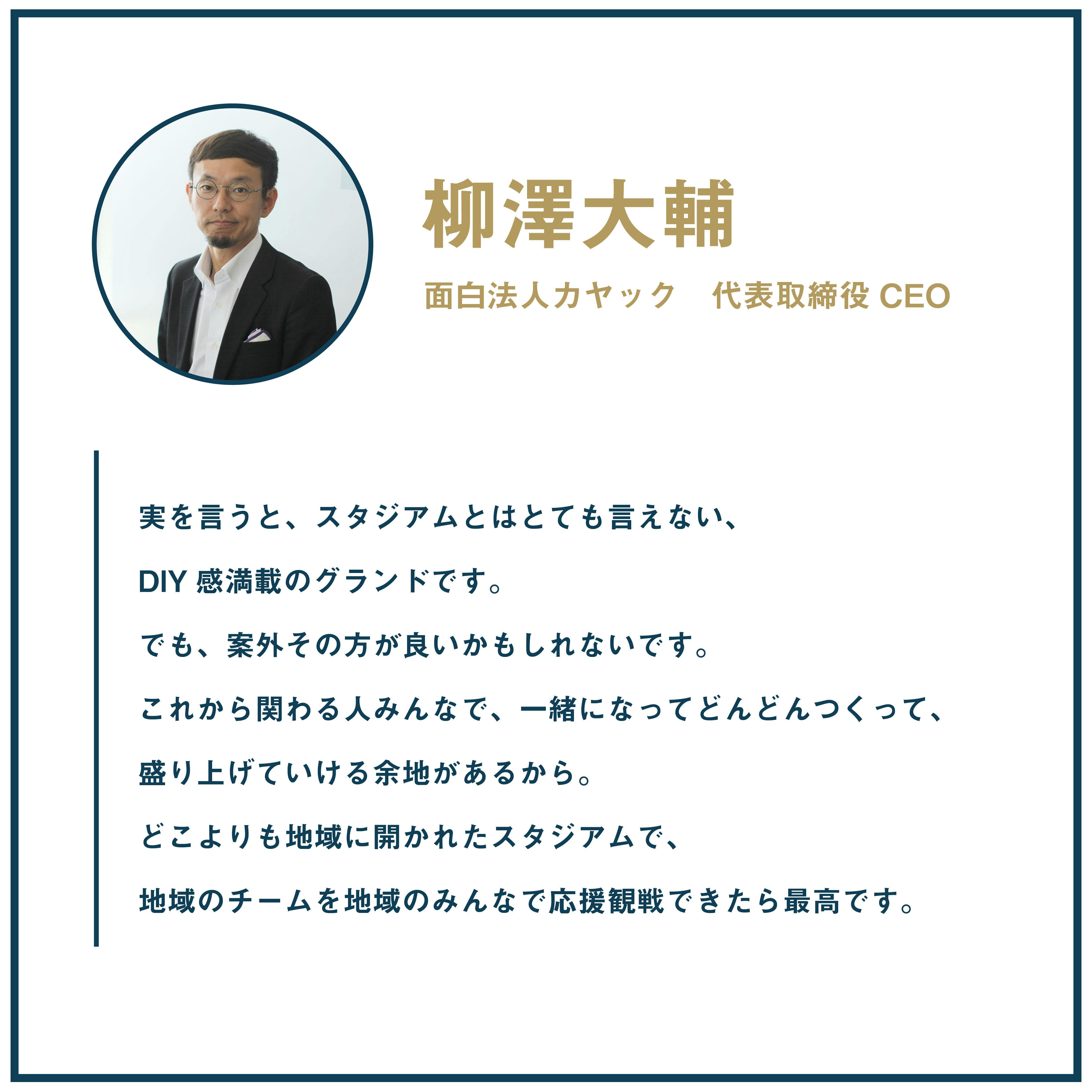 このスタジアムは、深沢地域土地整備事業での開発が進むまでの暫定的な土地活用で、最短で3年間で姿を消してしまうかもしれません。冒頭にも書きましたが、通常そんな条件下において、このような無謀なチャレンジはしないのが普通かもしれません。ただ、私たちは3年前にゼロからクラブを立ち上げ、自分たちも驚くほどの数々の仲間が集り、ともにミラクルを起こし、現在に至ります。おそらく次の3年でも、さらなる仲間たちが集り、奇跡が起こると信じています。