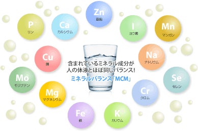 免疫力の研究から生まれた特許取得(特許番号第3247620号)の天然ミネラルサプリメント MCM(Marina Crystal Minerals)を配合し、「美味しく飲むだけで、いつの間にか健康に」という、ひとつ先を駆け抜ける進化した飲料水です。