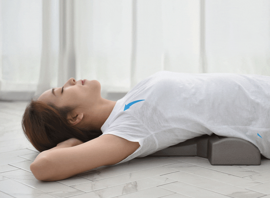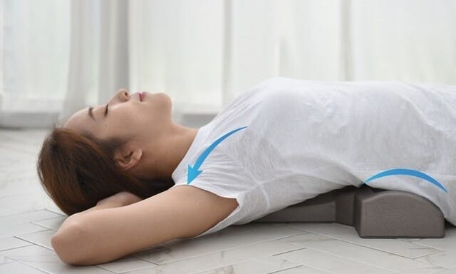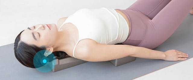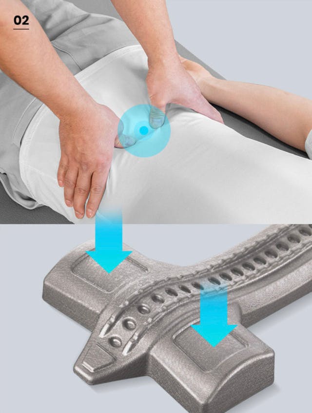 関節のズレている所に突起が当たり、重力を介して身体の重さがその突起に伝わる。そして、ゆっくりとしたリズムで呼吸をすると自然にズレが修正されていきます。