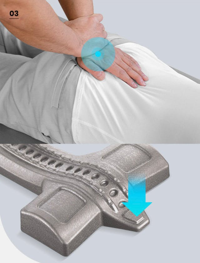 この商品、本体の形状、突起の位置・角度・大きさ、が絶妙で、様々なタイプの背骨(身長、体重、性別、年齢)に合うように設計されています。