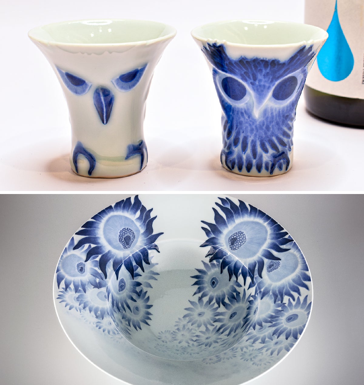 2014年に日本伝統工芸展に初入選(以降連続7回当選)、2020年に現代茶陶展TOKI織部奨励賞受賞など、数多くの入選歴をお持ちである長野県出身の若手陶芸家です。NPO法人日本の工芸と文化でも、岸田さんの作品を取り扱っています。今回のクラウドファンディングでは、2種類の梟が描かれたぐい呑みをご用意いただきます。志賀泉酒造さんの日本酒『一滴二滴』とともにお楽しみください。