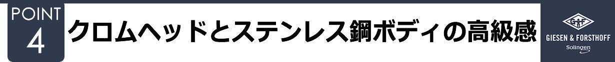 4. クロムヘッドとステンレス鋼ボディの高級感と重厚さ。