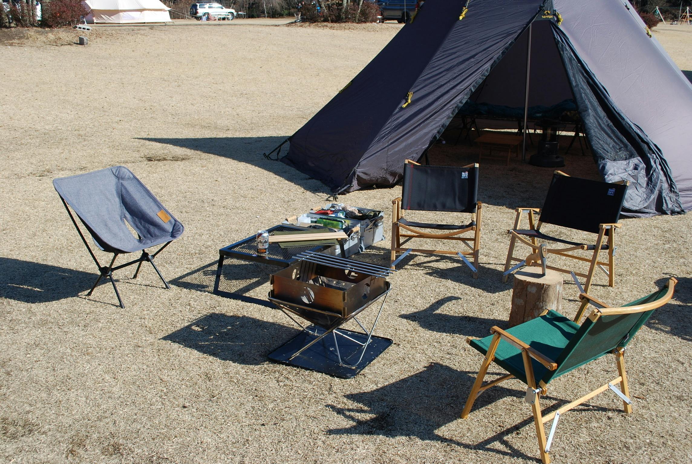当然ですが、キャンプ場にログテーブルなどを設置することはできません。