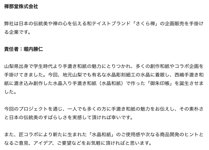 日本の伝統工芸を未来に残し伝えたい事から「さくら禅」ブランドを多くの方にご紹介し、伝統工芸にたずさわる職人さん達への仕事供給資金に使用させて頂きたいと思っております。