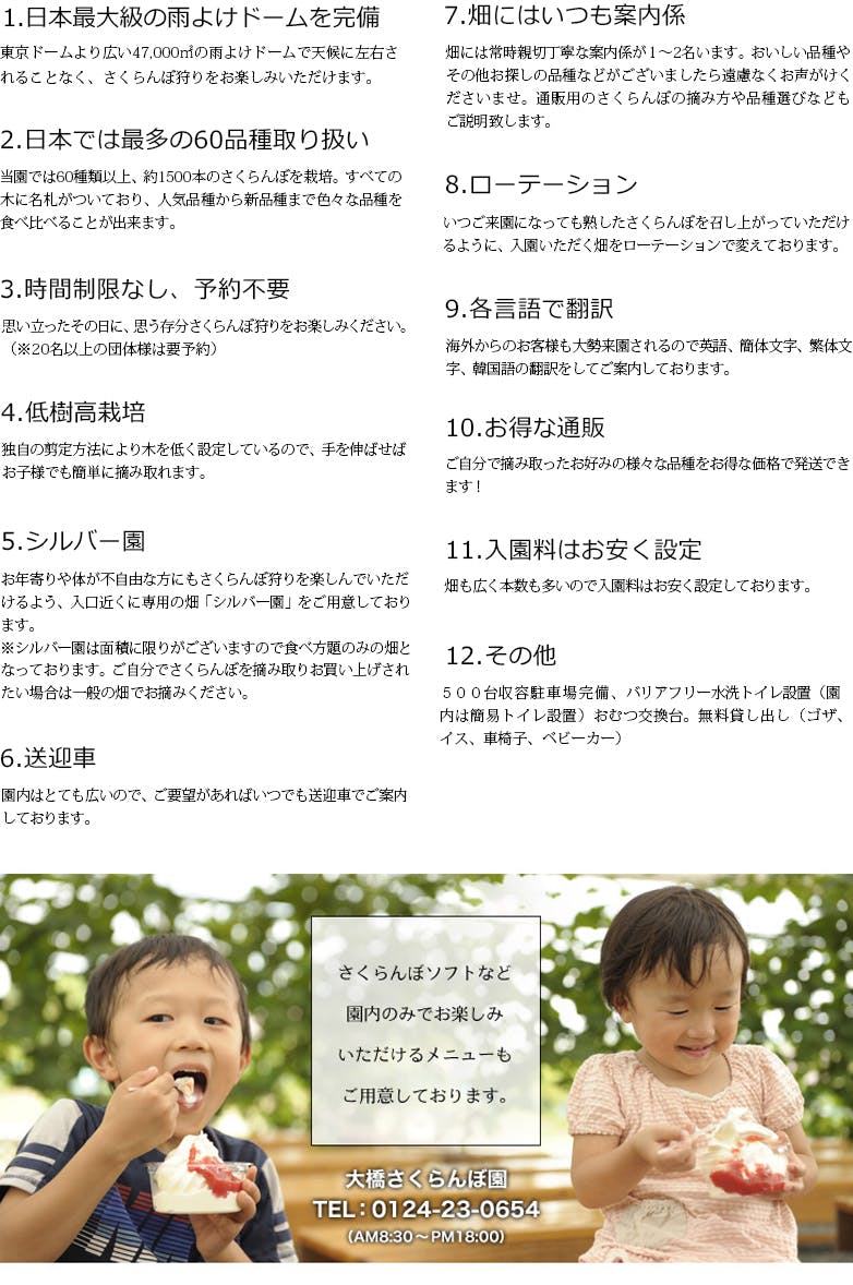 大橋さくらんぼ園の理念は『笑顔をつくる』『思い出をつくる』『感動をつくる』『人をつくる』です。
