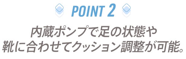 ・内蔵ポンプで足の状態や靴に合わせてクッション調整が可能。