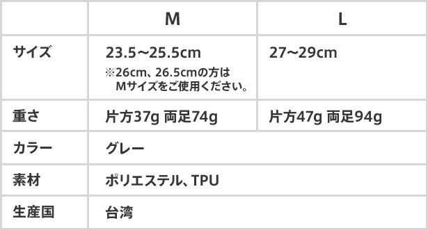 なお26cm、26.5cmの方はMサイズをご使用ください。