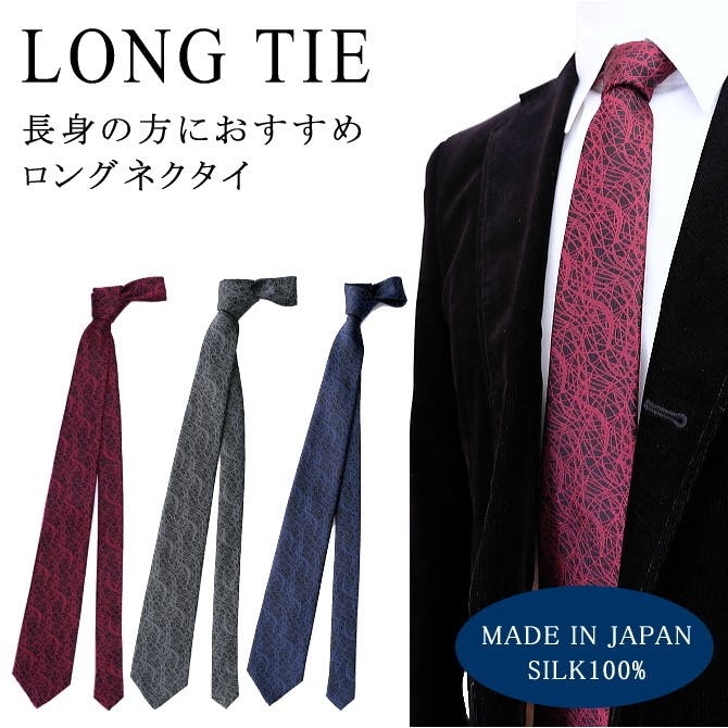 ① 通常のネクタイでは短すぎて困っている方達へ、長いネクタイをお届けしたい。