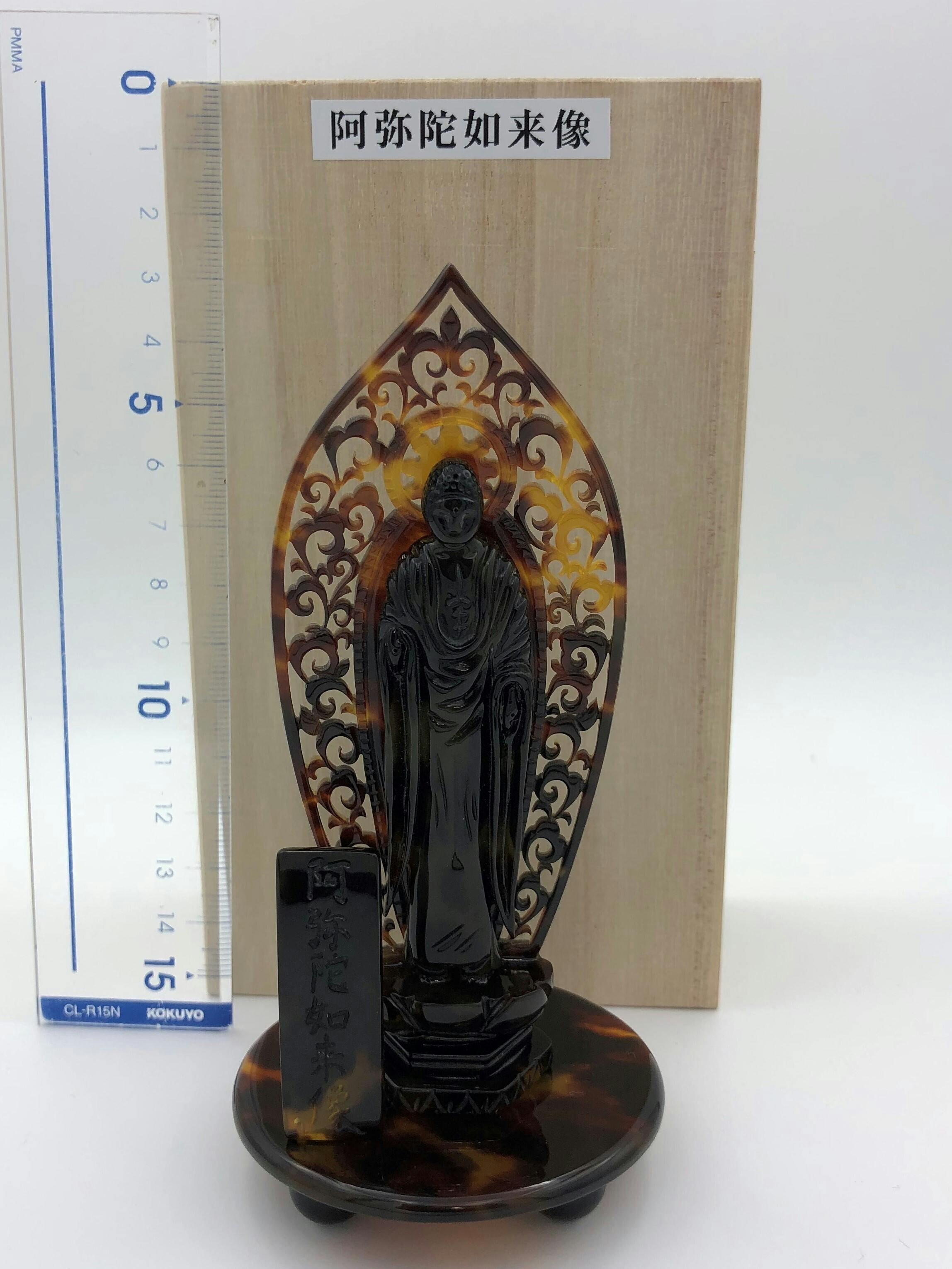 べっ甲のみで作られた阿弥陀如来像「透かし彫り」