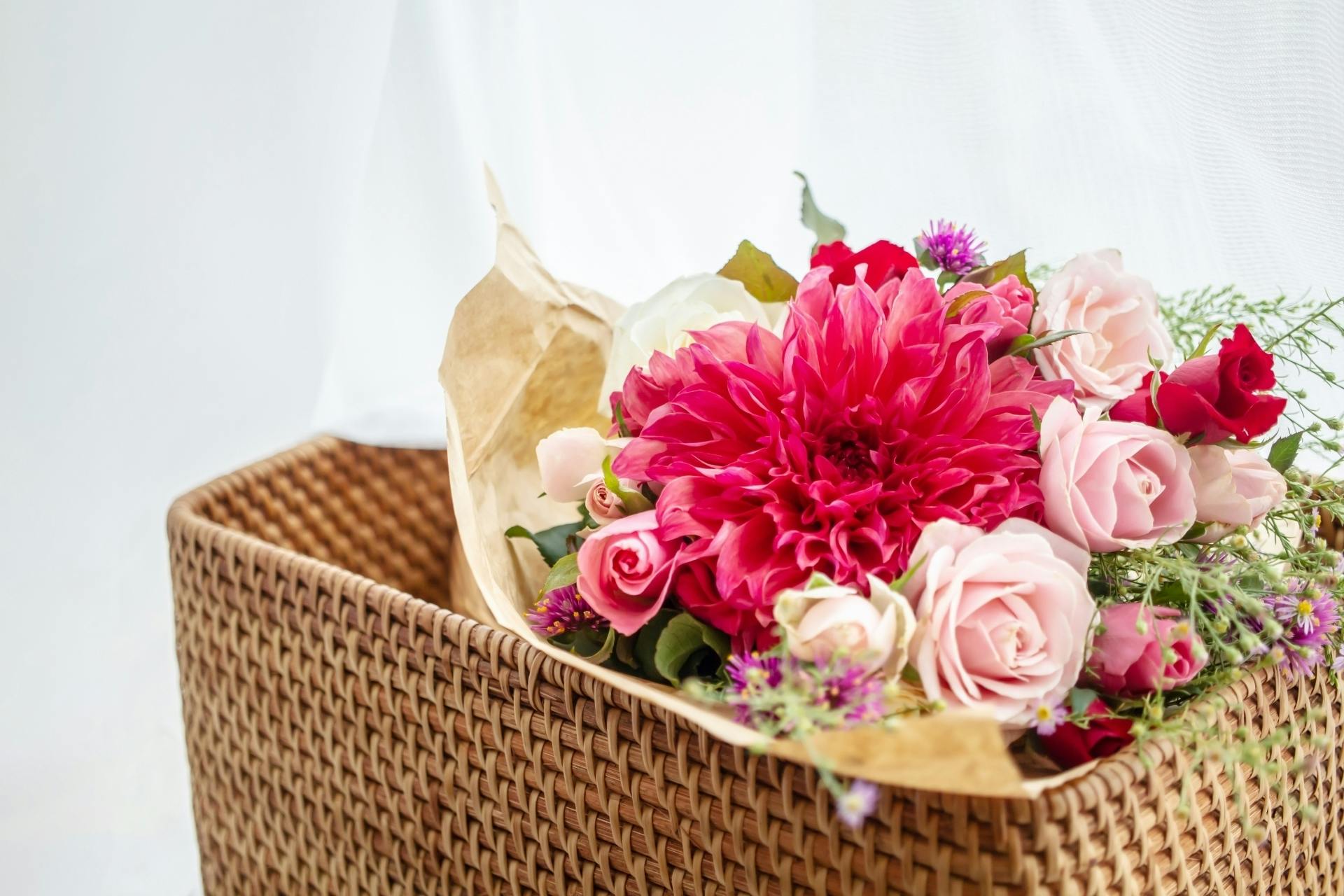・お客様に支援者からのメッセージカードと花束のバスケットを記念品として提供