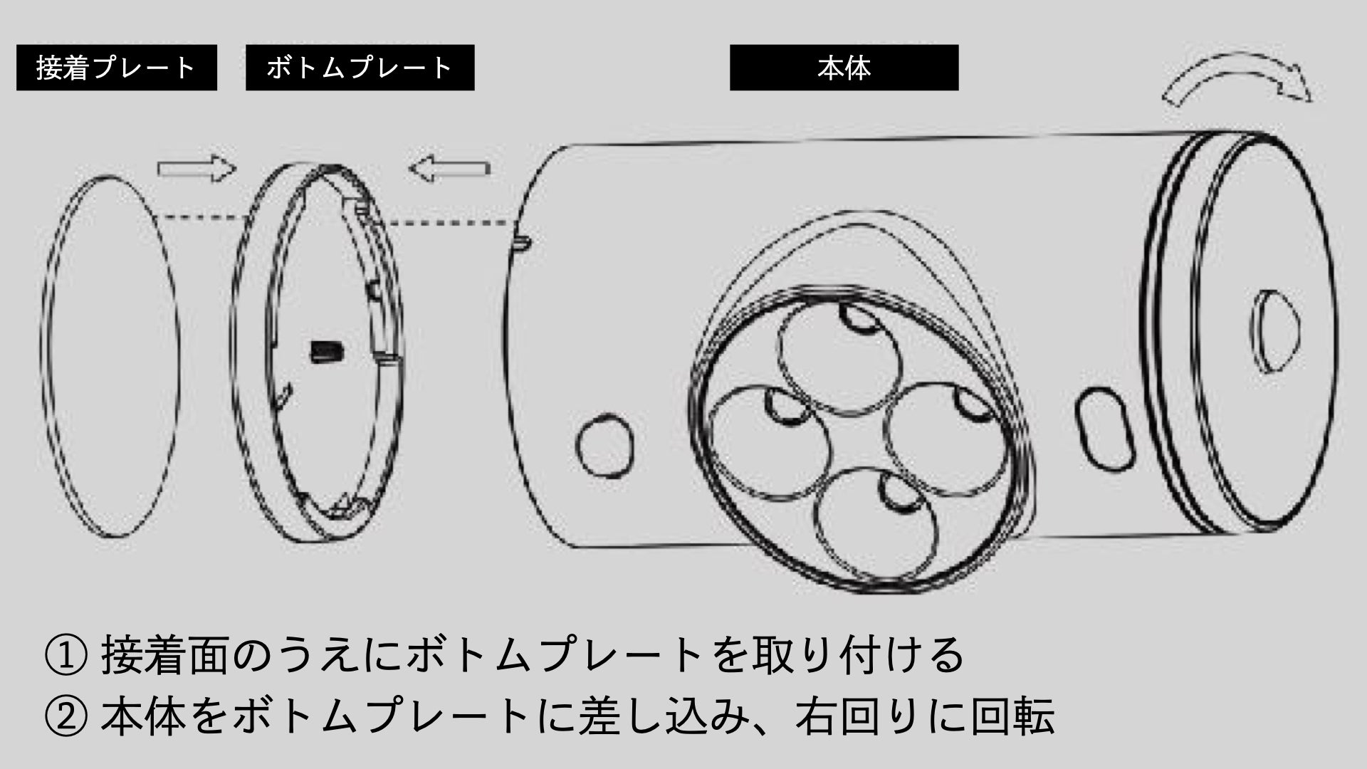 接着式なのでどんなドアにも取付可能。本体を差し込んでひねるだけ!