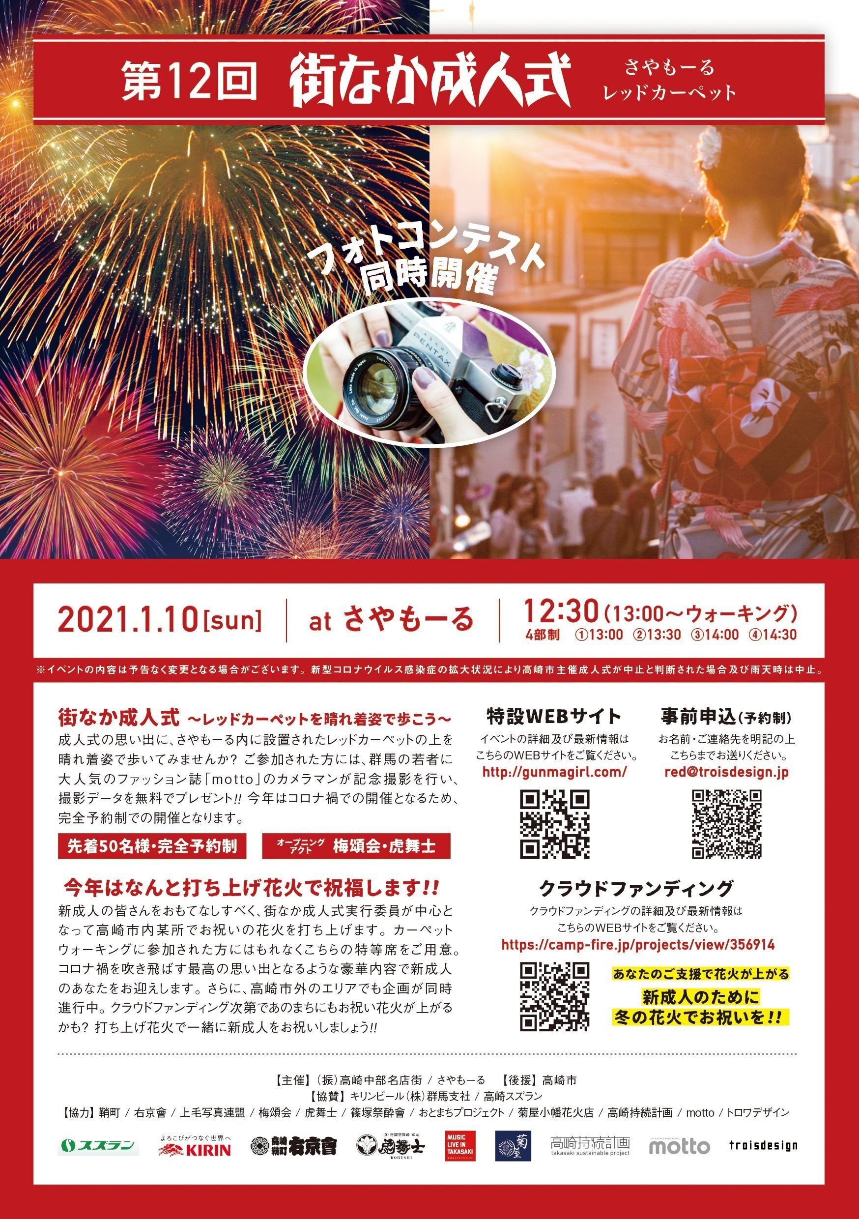 県内各地での祭事、花火大会で夜空を彩る花火師たちと、商店街をあげて町の新成人を祝福する”まちなか成人式”を10年以上続けてきた商店街が、コロナ禍だからこそ盛大に、そして多くの人々と新成人をお祝いしたいという共通の思いで1月10日に高崎市内で新成人を祝福する花火を打ち上げます。