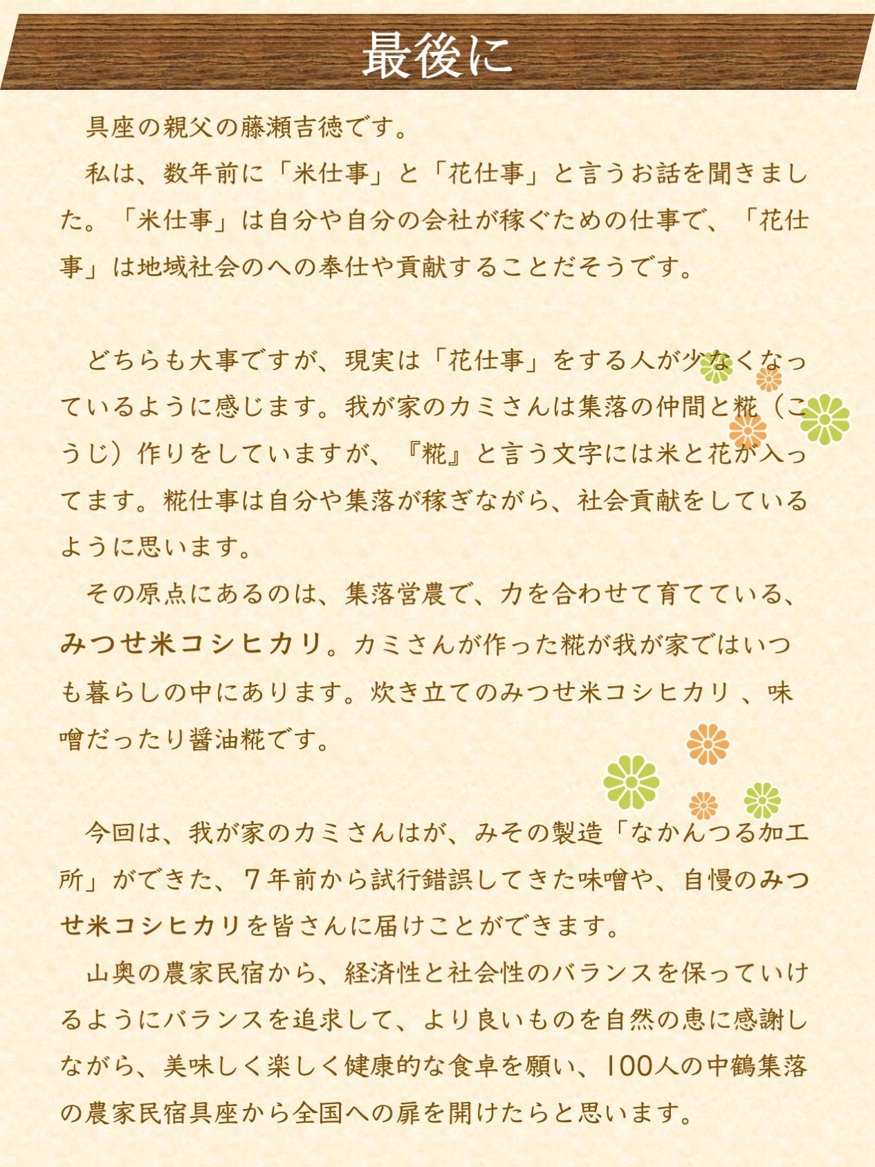 ・コシヒカリ米5kg×1・具座オリジナルでぬぐい1枚・味味噌1つ・『ピーマン味噌1つ』が入ります。