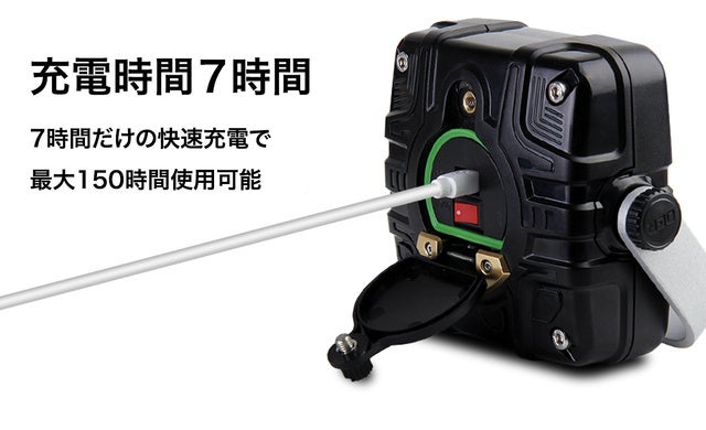 Prometheus-IIでは、大容量バッテリーと快速充電方式を導入したことにより、7時間の充電時間で最大150時間という驚くべき時間の使用が可能となりました。