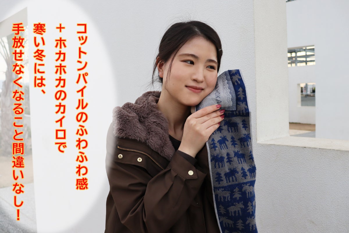 マフラー裏の中央部分にカイロが入るポケットが付いています。カイロを入れてこの冬の寒さ対策へ。もちろん普段使いのタオルとしてもお使いいただけます。