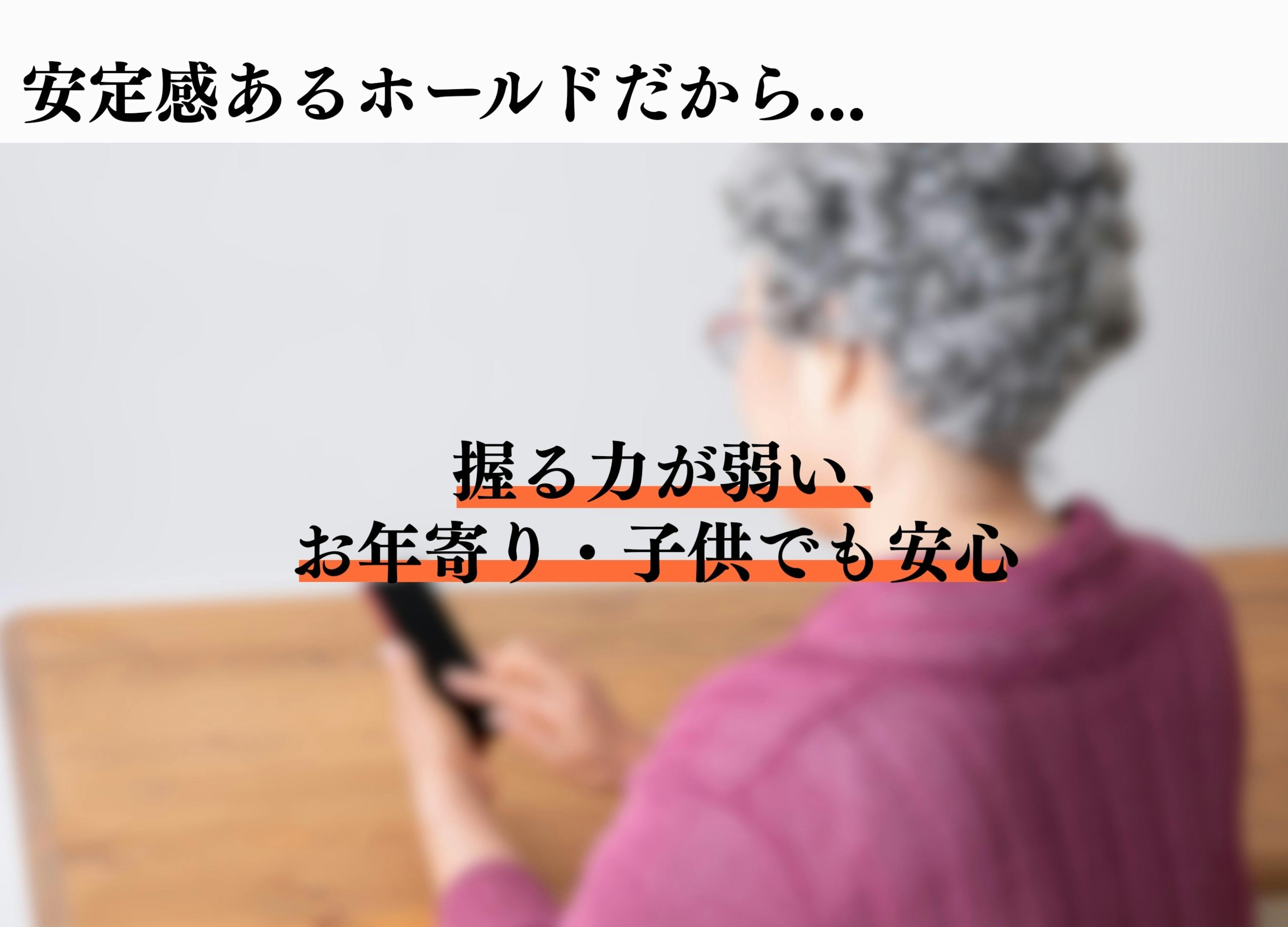 また、シートをスマホの底面に装着することにより、スマホを手全体で支えて持つことが出来るため、姿勢の悪化やスマホの落下の防止に役立ちます。