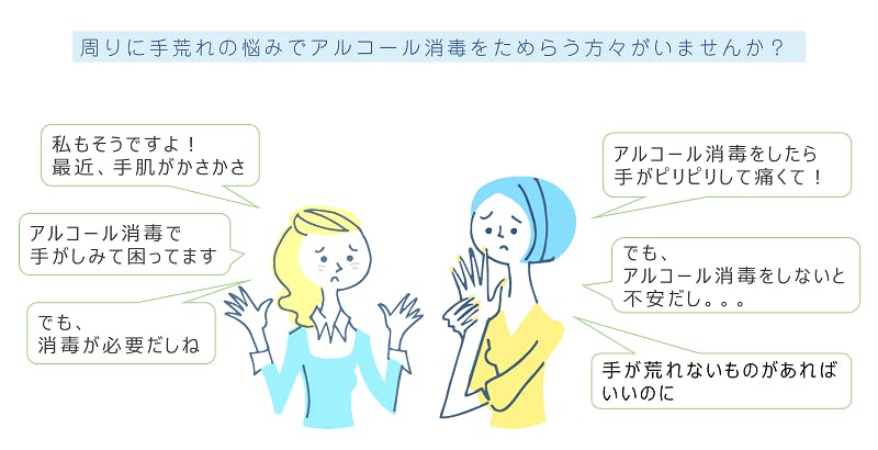 職場、学校、施設や店舗に設置してあるアルコールが、手荒れで使いにくい場合