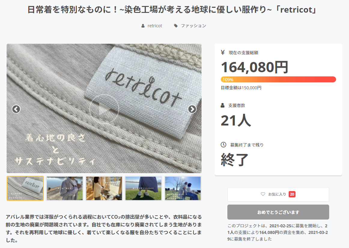2021年2月25日~3月29日にて、1回目のクラウドファンディングを行いました。