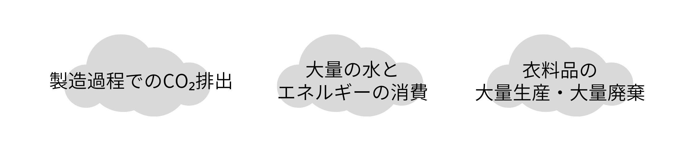 衣料品が作られる過程はCO₂の排出量が多く、大量の水を消費します。