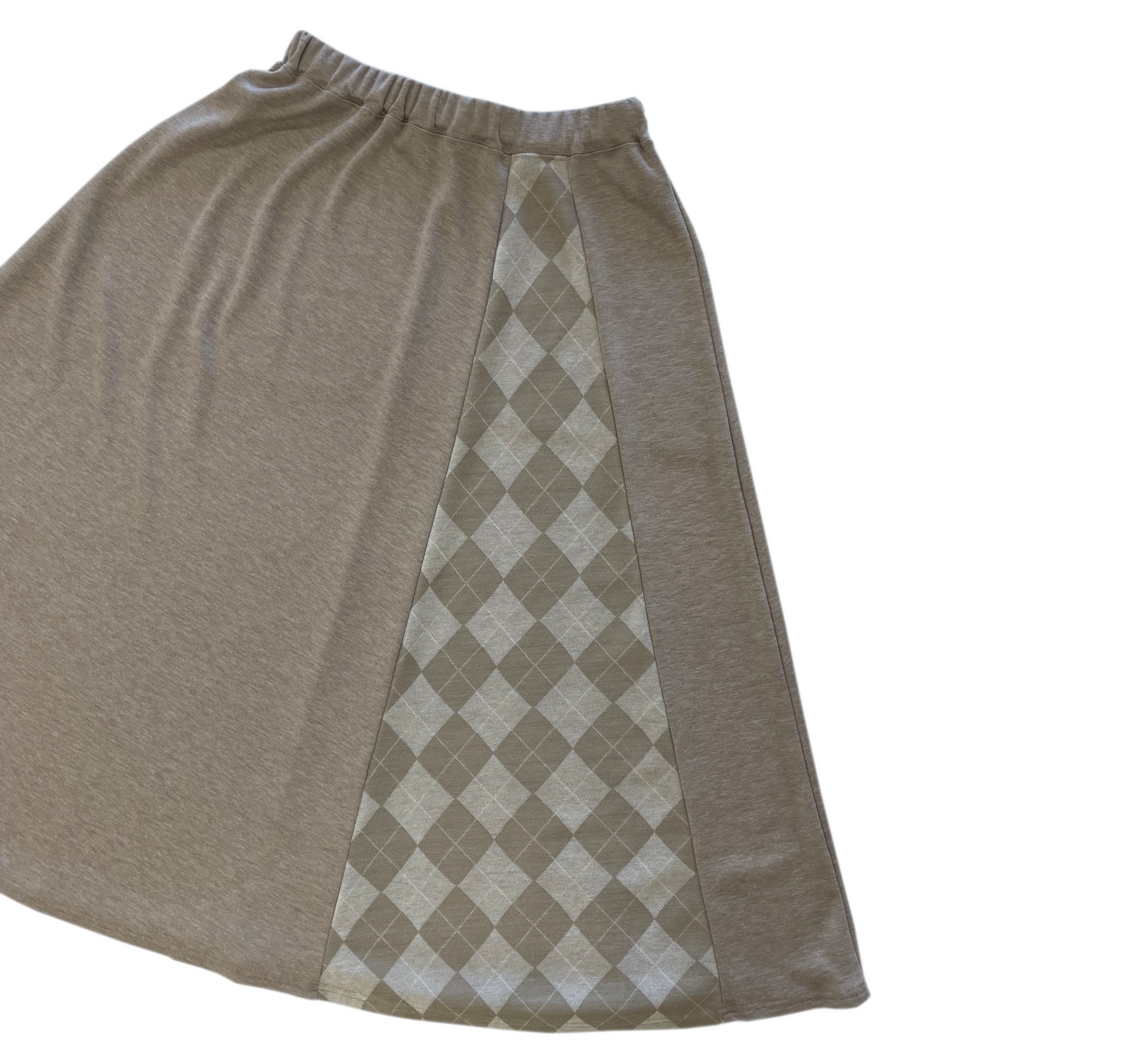 2種類の生地を使った大人かわいいデザインのフレアスカート。